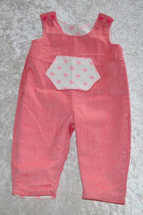 Die Hose hat einen schönen weiten & bequemen Schnitt. Sie wird an den Trägern mit Druckknöpfen geschlossen.