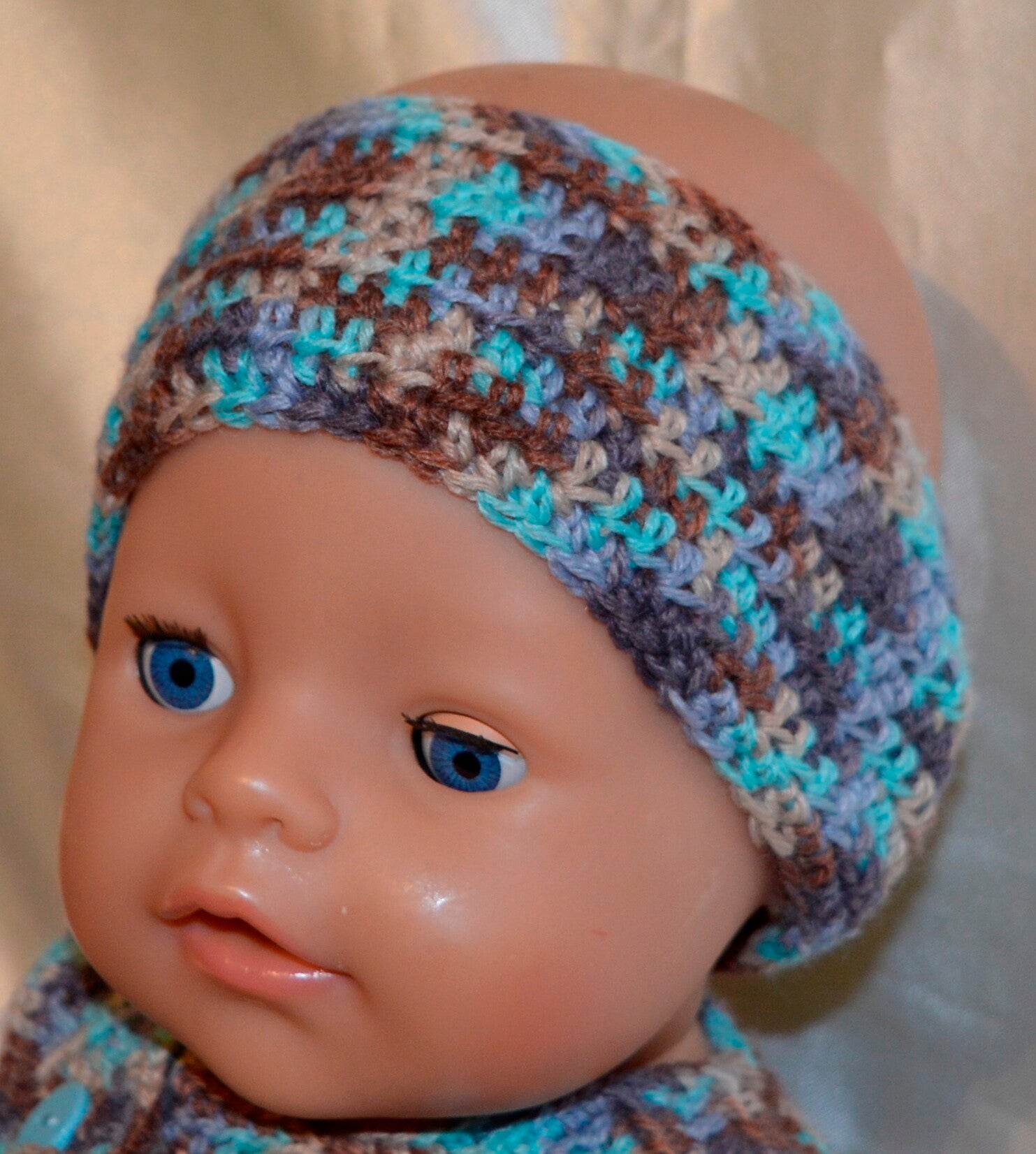 Puppenkleidung Set *Pullover & Rock mit Stirnband blau braun*