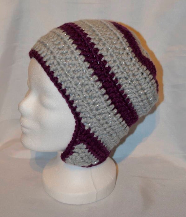 Mütze Ohrenmütze Häkelmütze Ohren Glitzer KU 55-59 *grau lila glitzer*