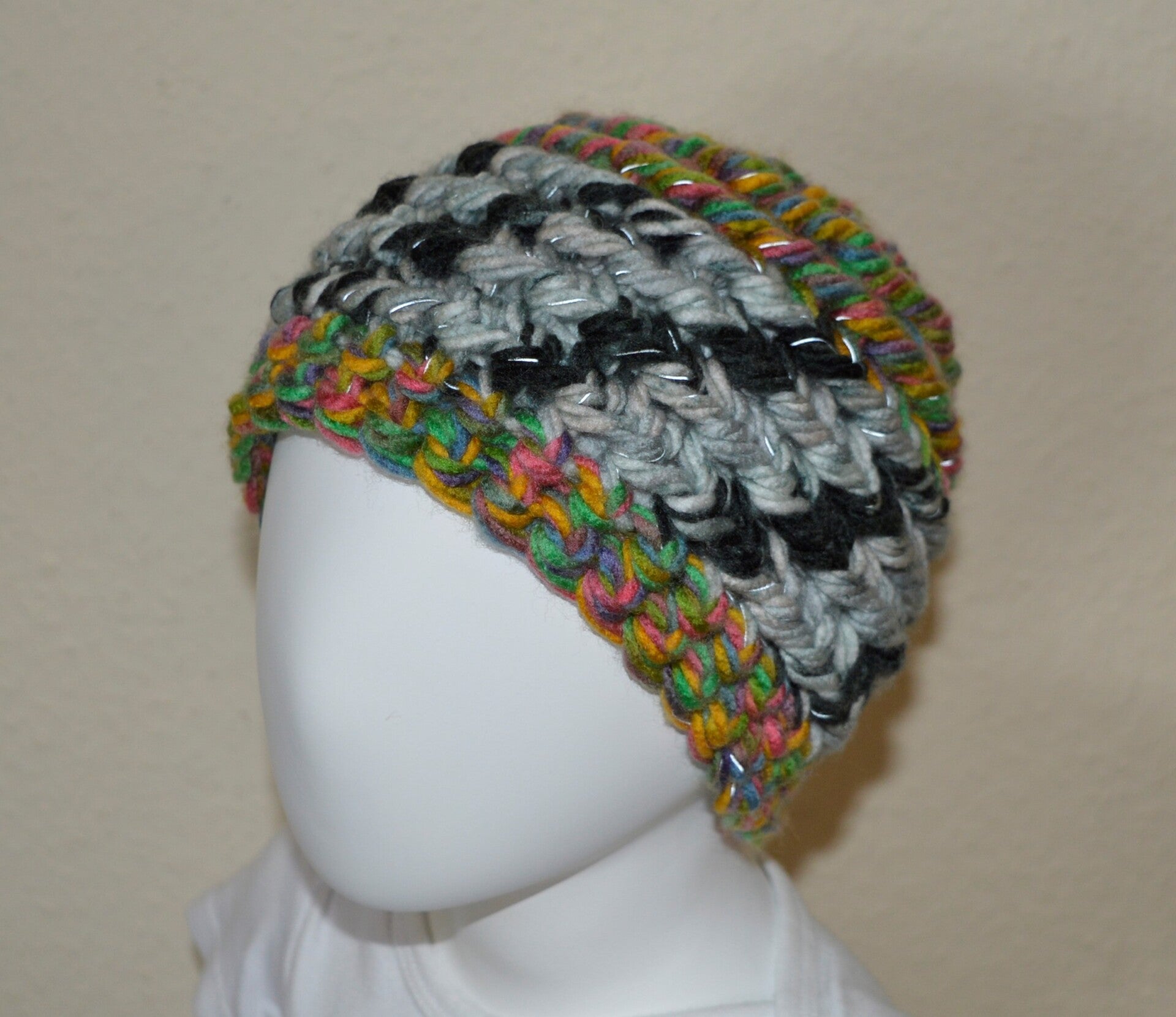 Mütze Häkelmütze Reflektor KU 40-44 *bunt grau Reflektor*