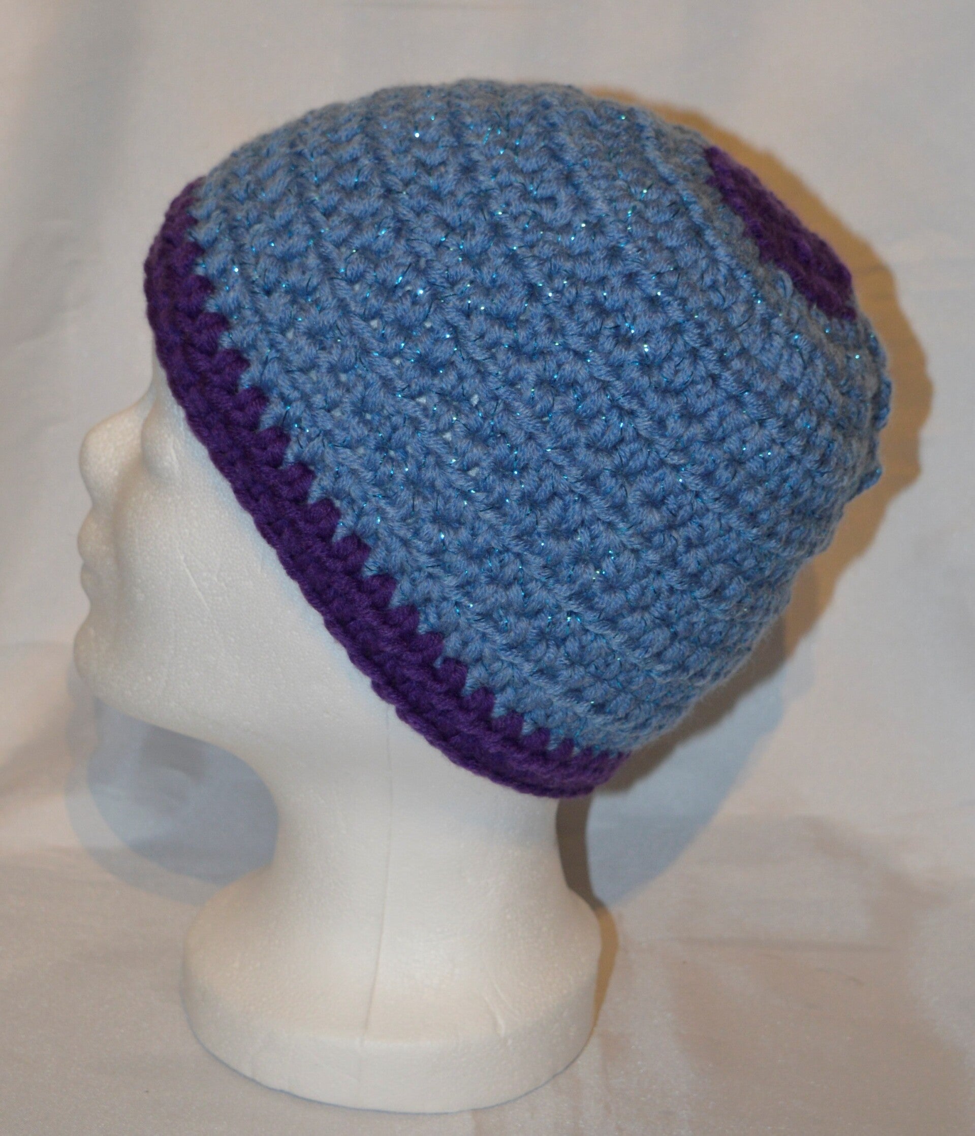 Mütze Häkelmütze normal Glitzer KU 50-54 *blau lila Glitzer*