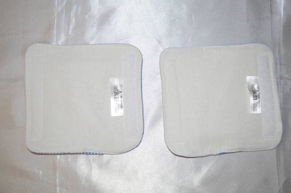 Sie sind aus Baumwolle genäht & mit Baumwoll-Molton innen gepolstert, sie werden mit Klett geschlossen.