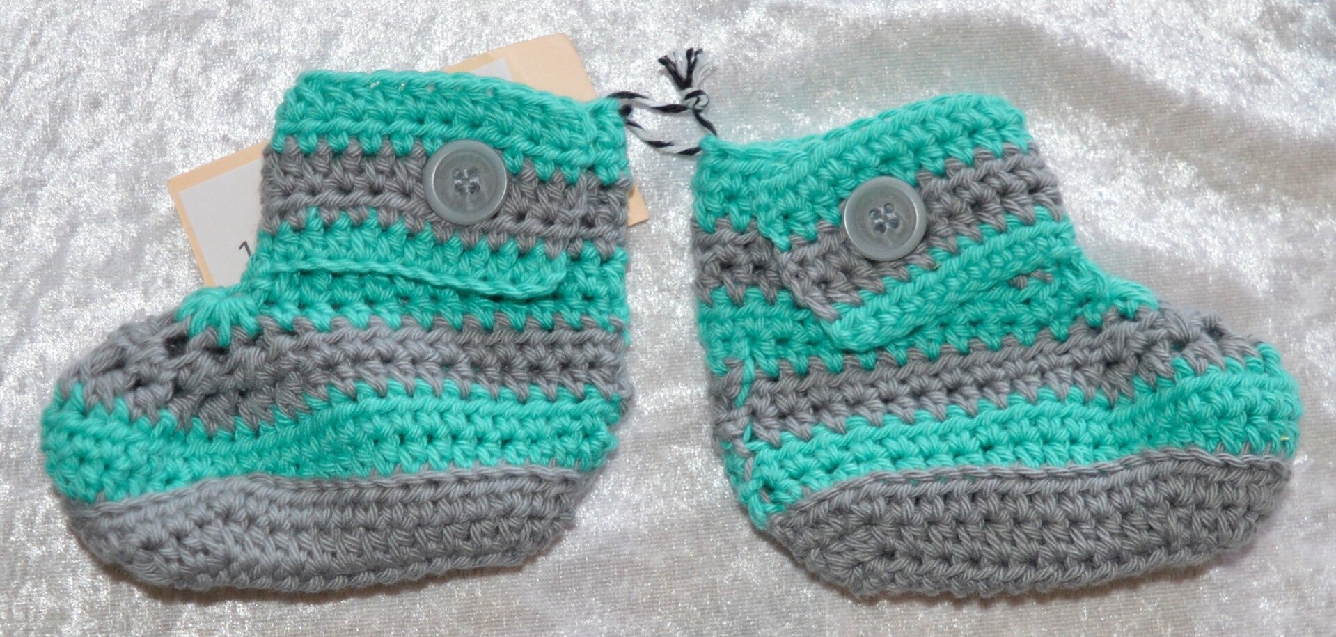 Baby Schühchen Schuhe gehäkelt 9,5 cm (ca. 4-6 Monate) *türkisgrün grau*