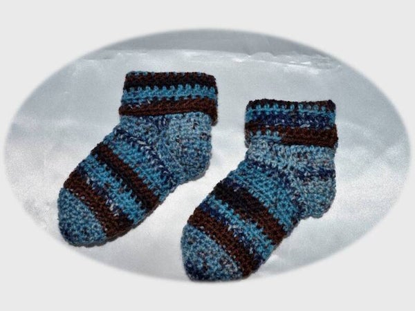 Socken / Söckchen gehäkelt Gr. 20/21 *blau braun gestreift*